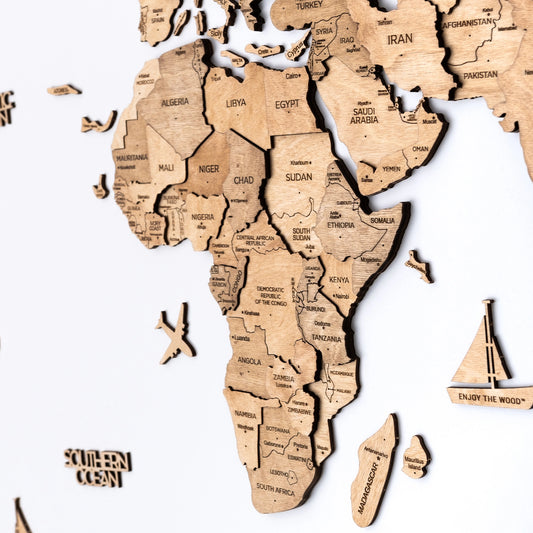 Explore Our Collection of 3D Wooden World Maps in Natural Wood Tones...