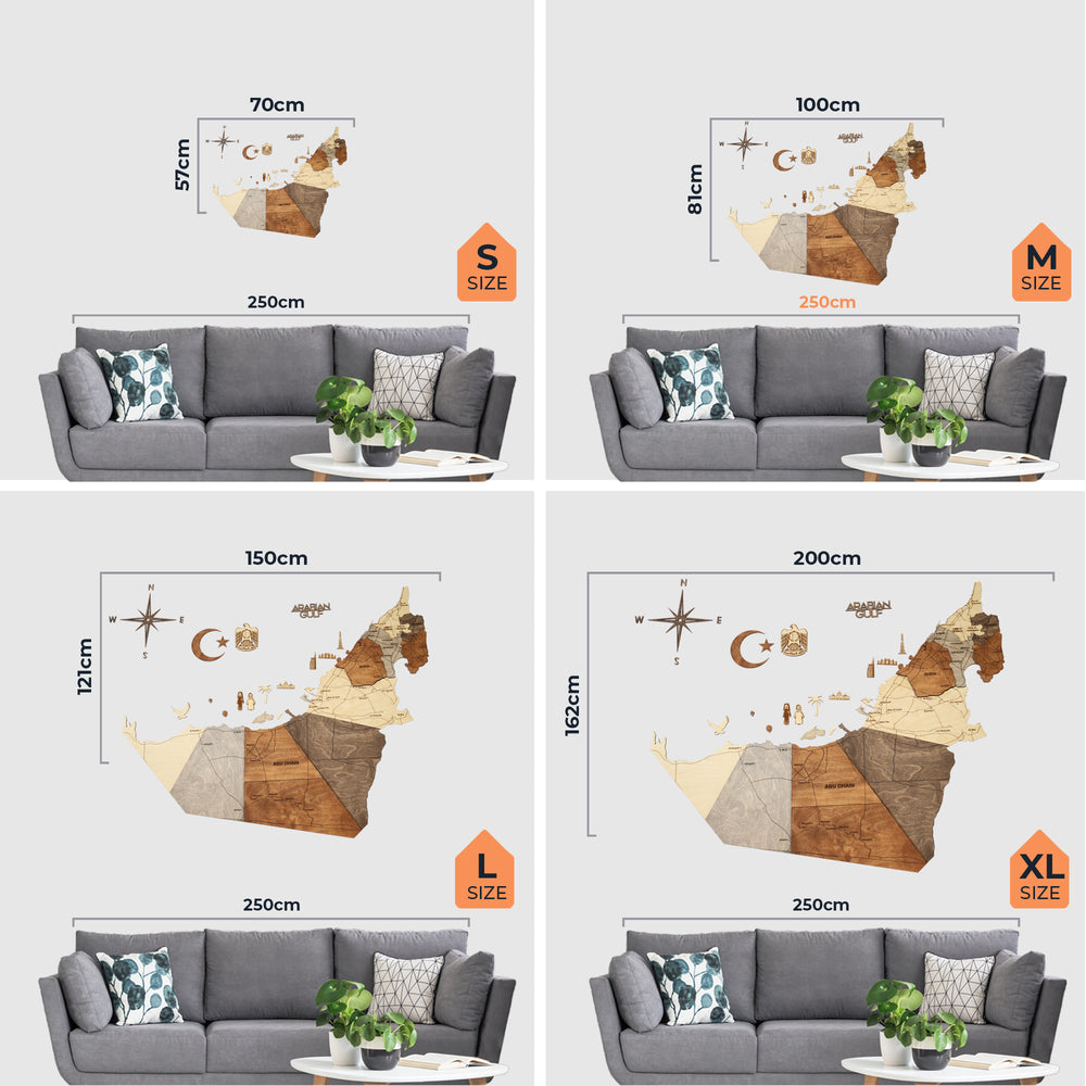 يرجى ملاحظة: تم تصميم هذه الخريطة لأغراض تزيينية وقد لا توفر دقة جغرافية دقيقة لدولة الإمارات العربية المتحدة. كل خريطة هي تحفة فنية فريدة من نوعها، تعرض الاختلافات الطبيعية في حبيبات الخشب واللون التي تعزز شخصيتها وفرديتها 🌲.