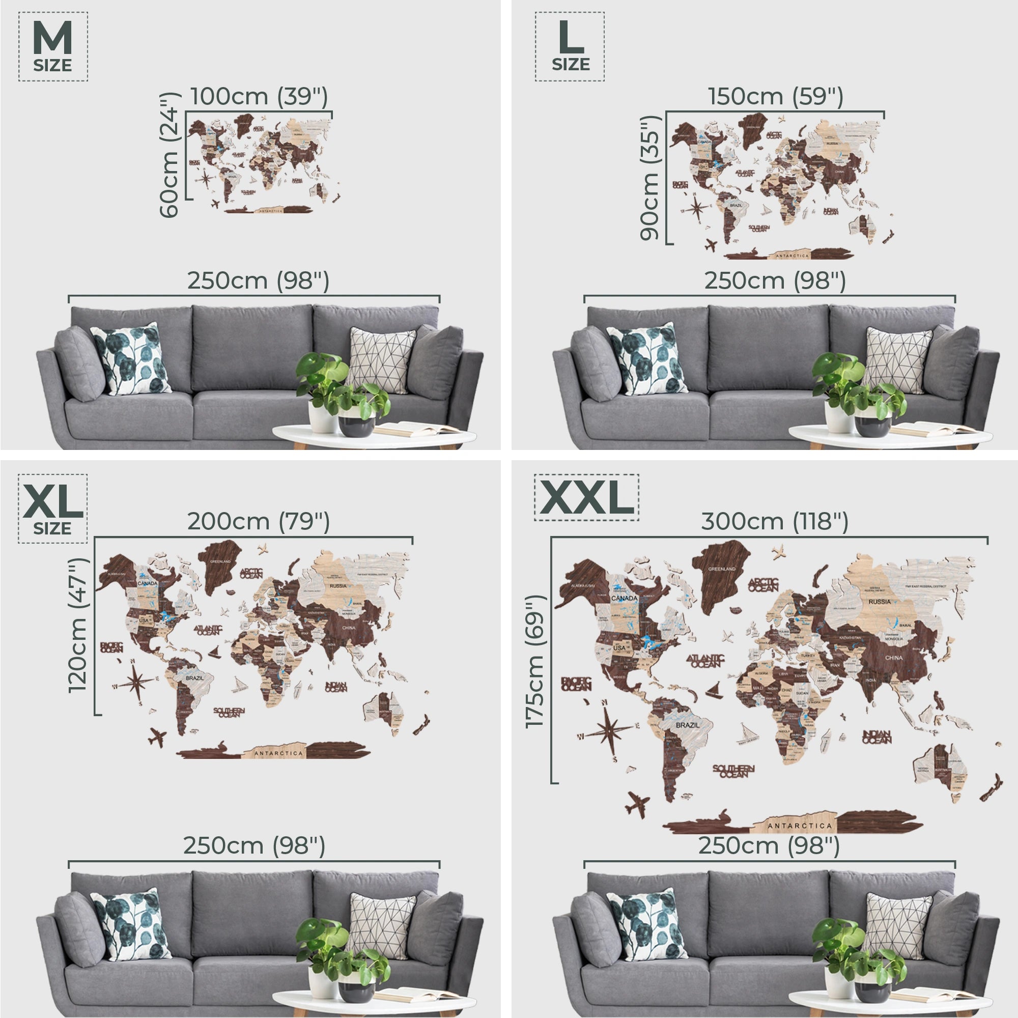يرجى ملاحظة أن الخريطة ليست خريطة جغرافية، وقد يتم حذف بعض البلدان والجزر الأصغر حجمًا. تعتبر كل خريطة فريدة من نوعها ، وقد تختلف الظلال لأنها مصنوعة من الخشب الطبيعي.