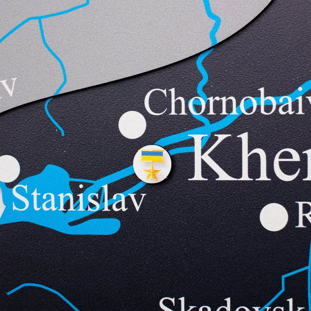 - Set of 15 pins for each hero-city: 💛 Chernihiv, 💙 Bucha, 💛 Irpin, 💙 Hostomel, 💛 Volnovakha, 💙 Okhtyrka, 💛 Kharkiv, 💙 Kherson, 💛 Mykolaiv, 💙 Mariupol