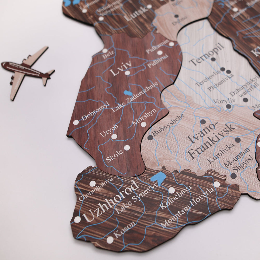 Transform your living space into an exquisite, well-traveled abode with Enjoy The Wood's Ukraine wooden map in Cappuccino color. Crafted from high-quality, eco-friendly materials, this unique 3D map adds a touch of elegance and sophistication to any room.