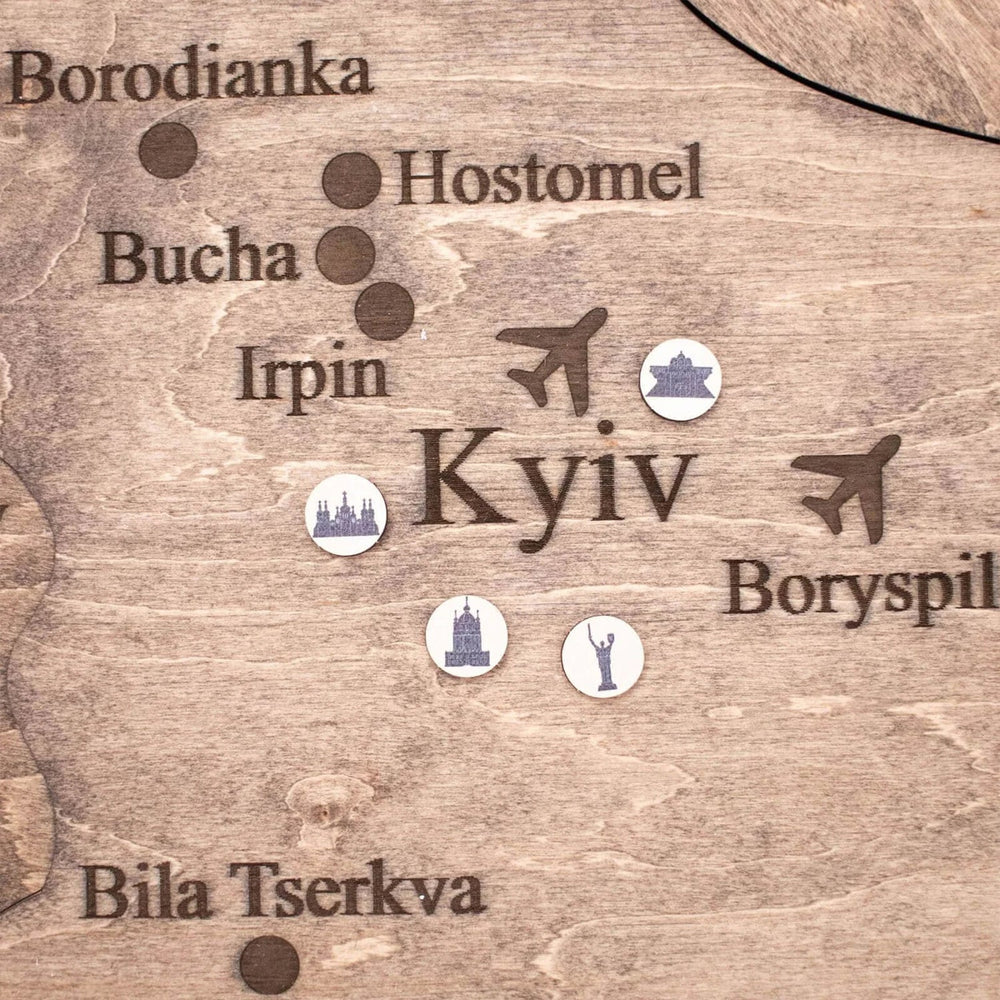 - The set includes pins for: Uzhhorod Castle, Solomiya Krushelnytska Lviv State Academic Theatre of Opera and Ballet, St. George Cathedral (Lviv), Church of Sts. Olha and Elizabeth, Holy Resurrection Cathedral, Lubart’s Castle, Ternopil Castle, Ivano-Frankivsk Ratusha, Holy Resurrection Cathedral (Chernivtsi), Bohdan Khmelnytskyi Monument (Khmelnitskyi), Zhytomyr Regional Philharmonic, Vinnytsia Water Tower, Saint Sophia Cathedral, Motherland Monument, St. Andrew’s Church, Golden Gate (Kyiv), Shcherbyna House (Cherkasy), Odesa Opera and Ballet Theatre, Mother of God Kasperskyi Icon Cathedral (Mykolaiv), Monument “Guardian Angel of Ukraine” (Kropyvnytsyi), Chernihiv Piatnytska Church, Transfiguration Cathedral, Borys and Glib Cathedral, White Gazebo (Poltava), Holy Cross Exaltation Monastery (Poltava), Sumy Gazebo, Holy Resurrection Cathedral (Sumy), St. Catherine’s Cathedral (Kherson), House of Organ and Chamber Music (Dnipro), Khortytsia (Zaporizhzhia), Annunciation Cathedral (Kharkiv), Tsar Cannon (Donetsk), St. Volodymyr’s Cathedral (Luhansk), Scythian Neapolis (Simferopol), Swallow’s Nest (Crimea).