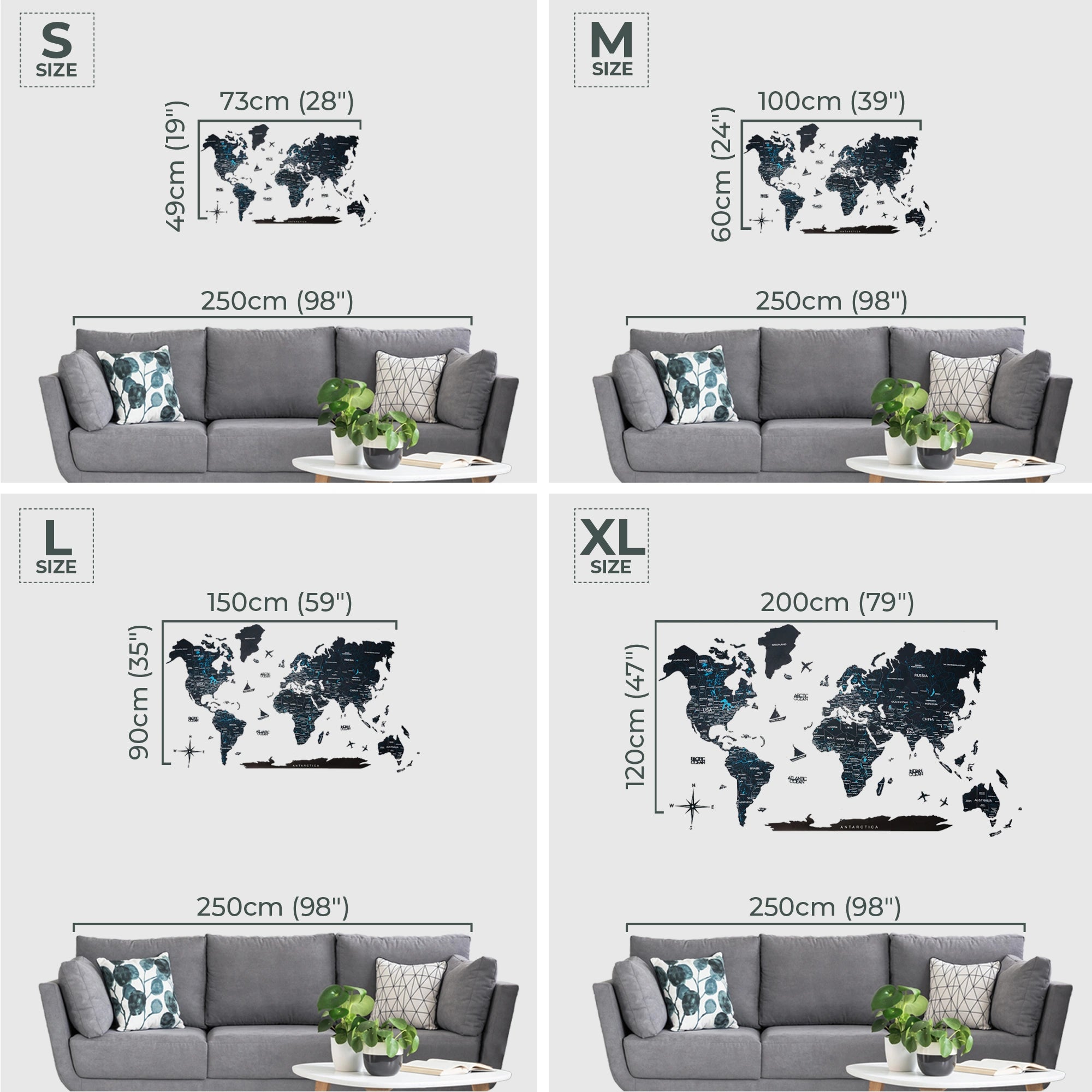 [الوصف] تأتي خريطة العالم الخشبية ثنائية الأبعاد بأربعة أحجام: