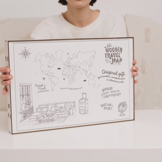 • Wood World Map White - Unique holiday gift for travel lovers.