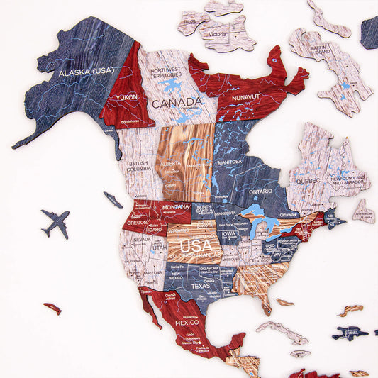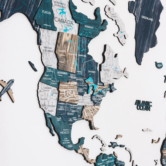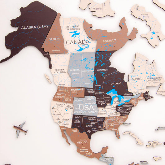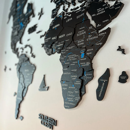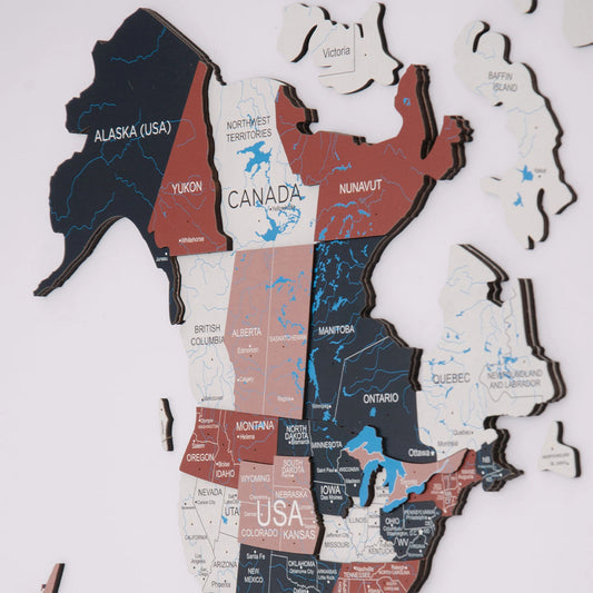 Add a touch of luxury, adventure, and educational value to your space with the 3D Wooden World Map | Colored with Lakes & Rivers. Order now and bring the world to your walls in exquisite detail!