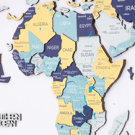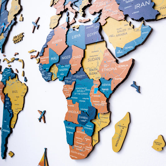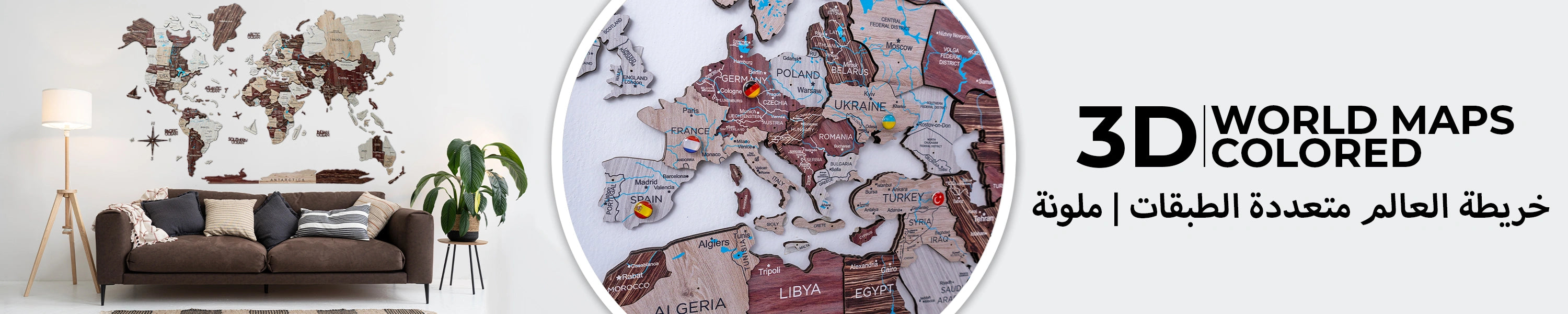 Our 3D Wooden World Maps in vibrant colors bring life to any space with their bold, artistic, and travel-inspired designs. Handcrafted from premium birch plywood, these maps feature precisely engraved country names and a stunning mix of natural wood shades and colorful finishes. Perfect for homes, offices, and creative spaces, they serve as both a decorative centerpiece and a storytelling piece. Whether you're in Riyadh, Jeddah, or Dammam, our colored maps add a modern and stylish touch to your wall.