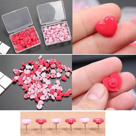 Heart Shaped Pushpins - 100pcs