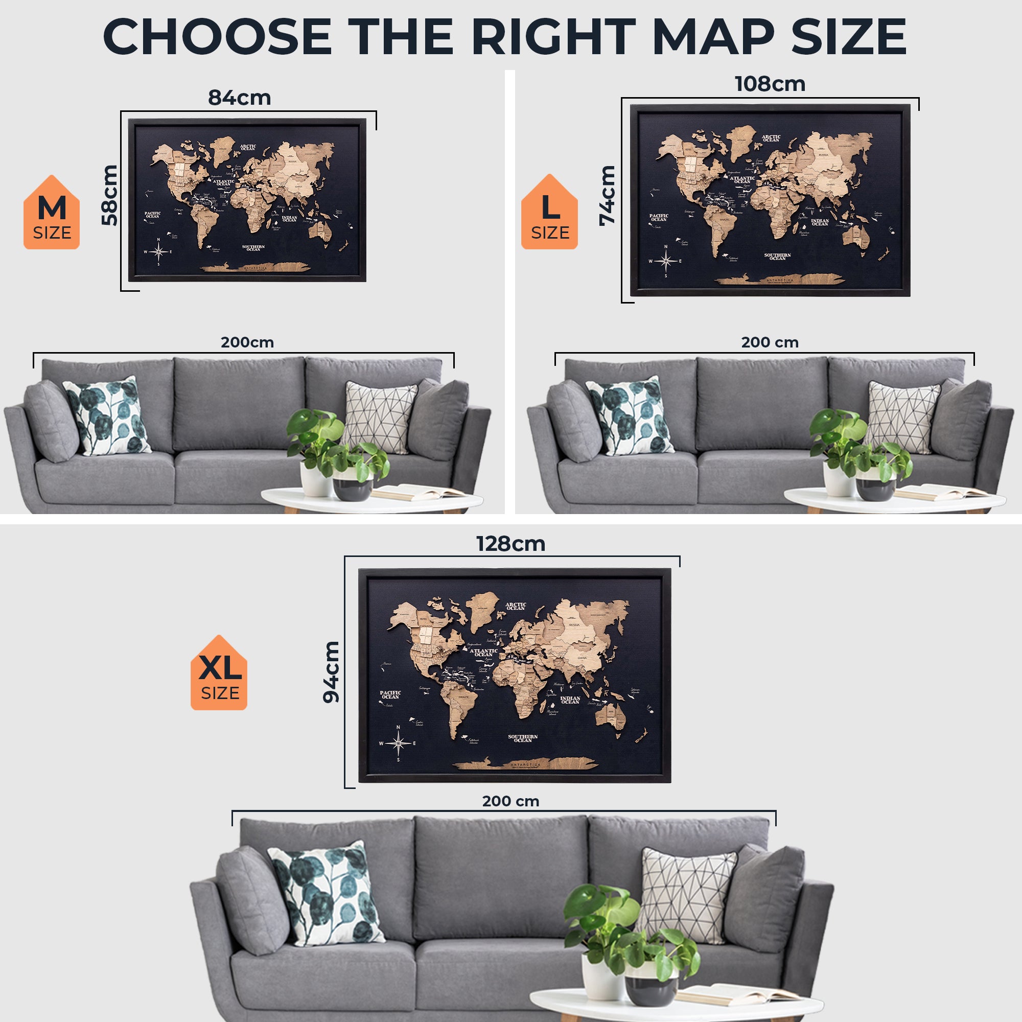 The map includes all necessary installation accessories for a quick and seamless setup. Add personality and meaning with Wooden special marks, marking the countries you’ve visited or the destinations you plan to explore — turning your map into a visual story of your travels.