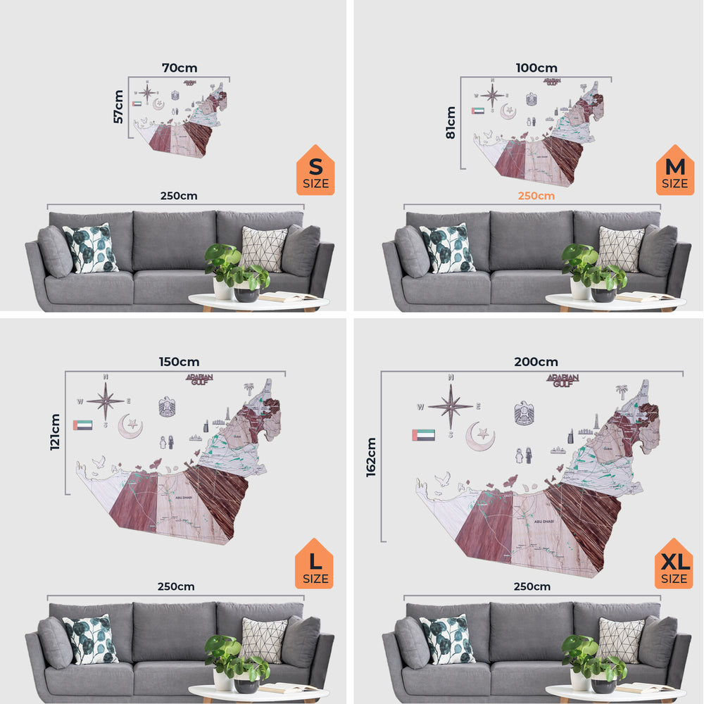Please Note: This map is designed for decorative purposes and may not provide precise geographical accuracy of the UAE. Each map is a unique masterpiece, showcasing natural variations in wood grain and color that enhance its character and individuality 🌲.