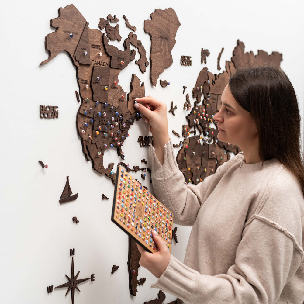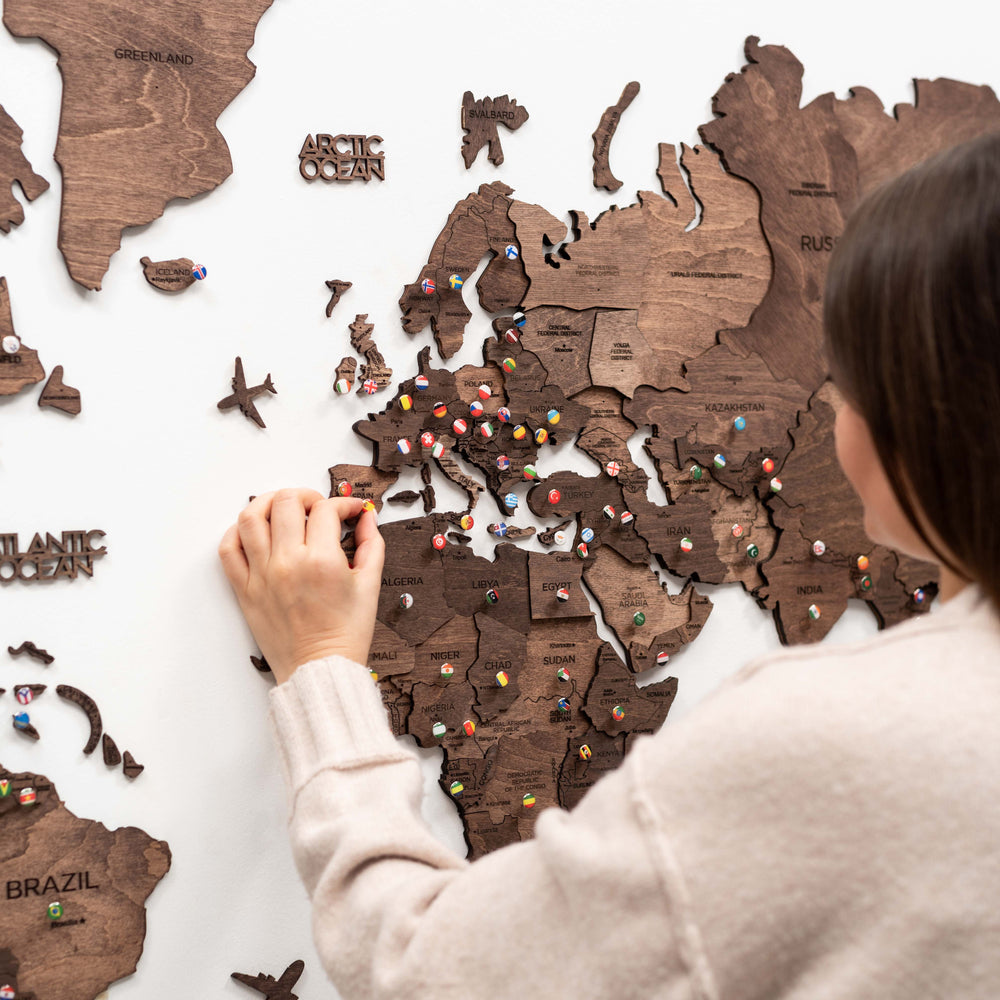 Expertly handcrafted from eco-friendly birch plywood, our multi-layer 3D Wooden World Maps add depth, character, and elegance to any wall. Designed for lasting beauty, they maintain their vibrancy for years. The default language is English, but you can customize names, colors, and sizes to fit your style.