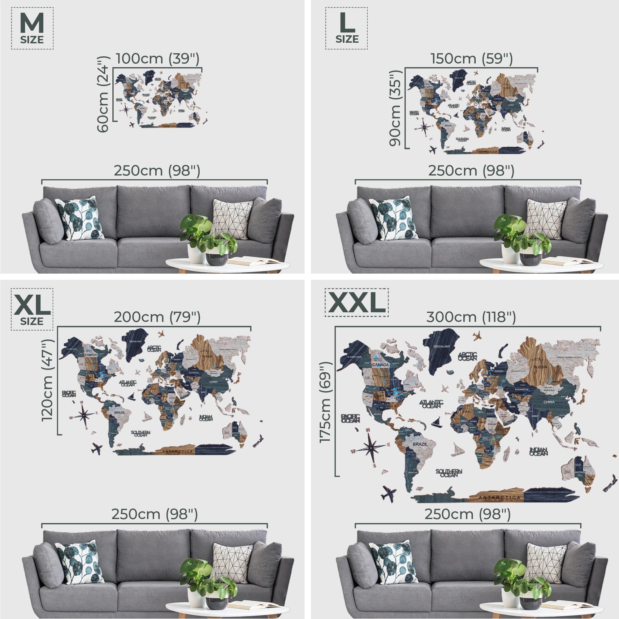 Expertly handcrafted from eco-friendly birch plywood, our multi-layer 3D Wooden World Maps add depth, character, and elegance to any wall. Designed for lasting beauty, they maintain their vibrancy for years. The default language is English, but you can customize names, colors, and sizes to fit your style.